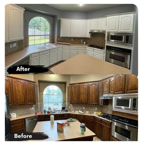 The cost to paint kitchen cabinets across the us. I just had some cabinets repainted in my house about 30 doors and 8 drawers. They get too much abuse to expect a non-factory paint job to look good for very long.
